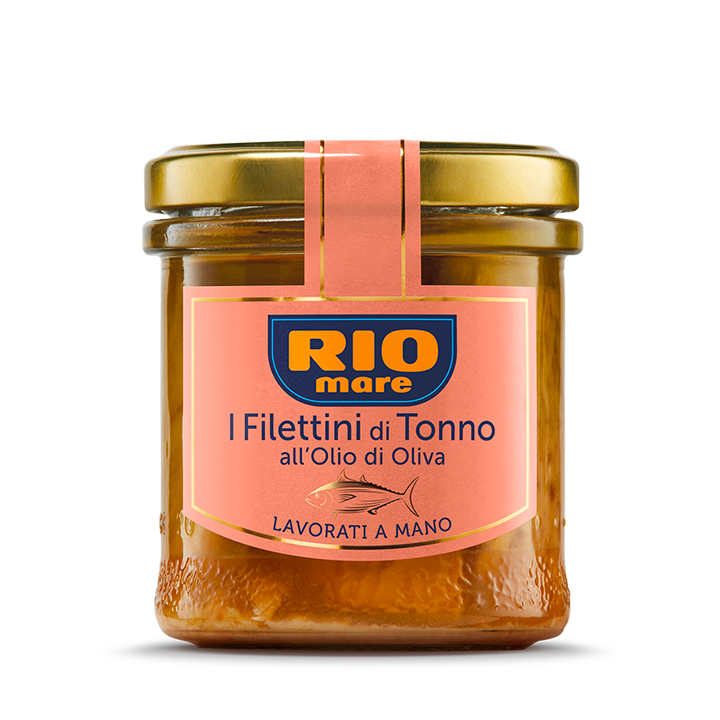Integri e compatti i Filettini di Tonno all’Olio di Oliva Rio Mare sono accuratamente selezionati, lavorati a mano uno ad uno e conservati in vetro, in una confezione da 130 g, la porzione giusta per te.